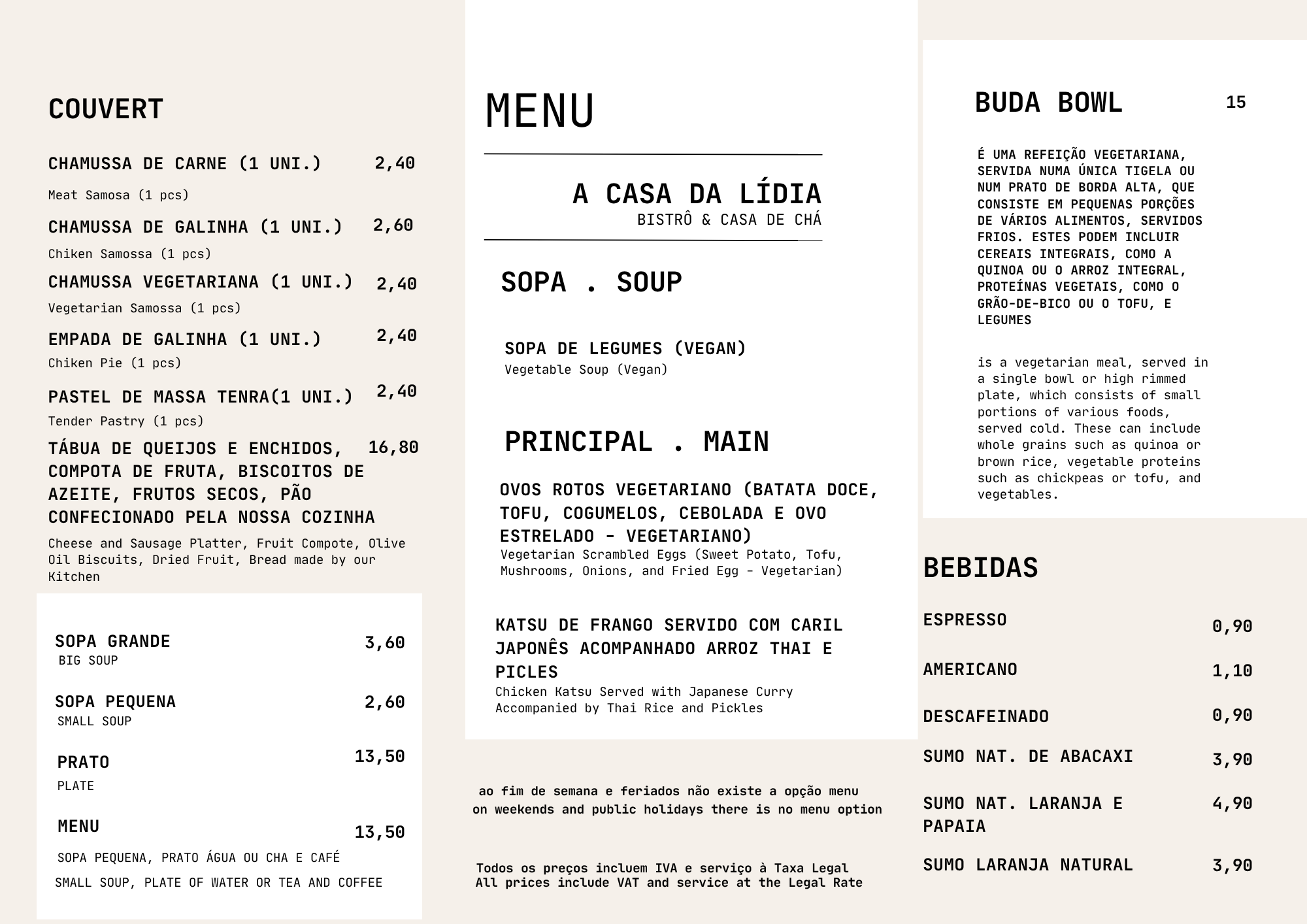 A nossa cozinha portuguesa vai revelar-lhe pratos inteiramente autênticos. Deixe-se maravilhar pelos nossos pratos saborosos e por uma ótima oferta de bebidas refrescantes. A nossa enorme oferta de saladas oferece opções para todos os gostos. Saboreie o nosso pão fresco e os nossos deliciosos bolos em qualquer momento ou como sobremesa. Temos todo o prazer em servir um almoço saboroso aos nossos convidados num ambiente tranquilo! Vai ser fácil manter-se em contacto com a comunidade graças à nossa Wi-Fi grátis.